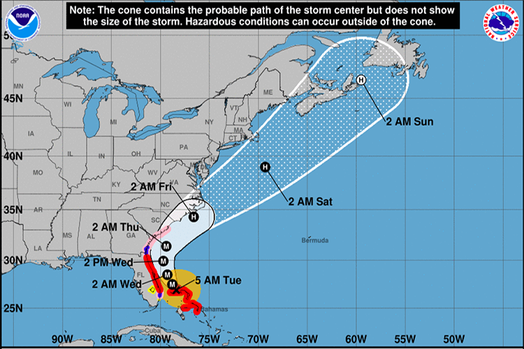 Heavy rain, storm surges, and strong winds are expected and “Tropical storm conditions will begin within the Hurricane Warning area in the Carolinas later today, with hurricane conditions by tonight,” according to NHC.